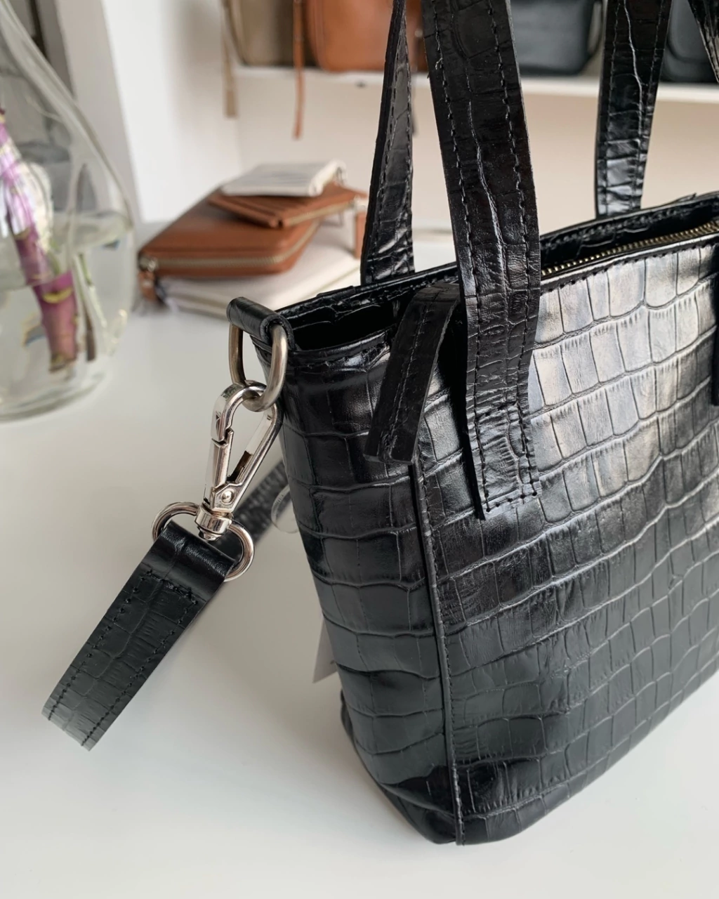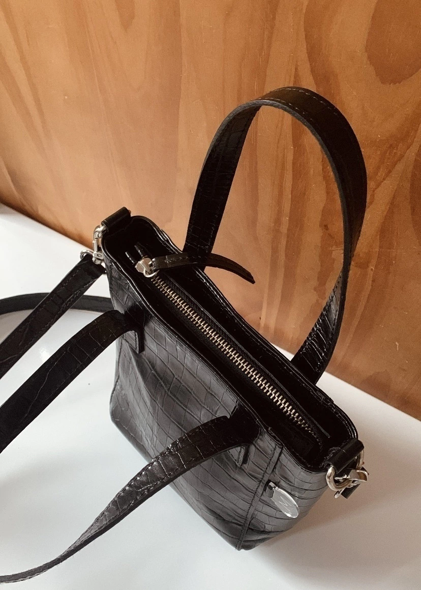 Nuestra mini Prada está hecha en cuero croco de excelente calidad. Trabajamos con las mejores curtiembres del país.
